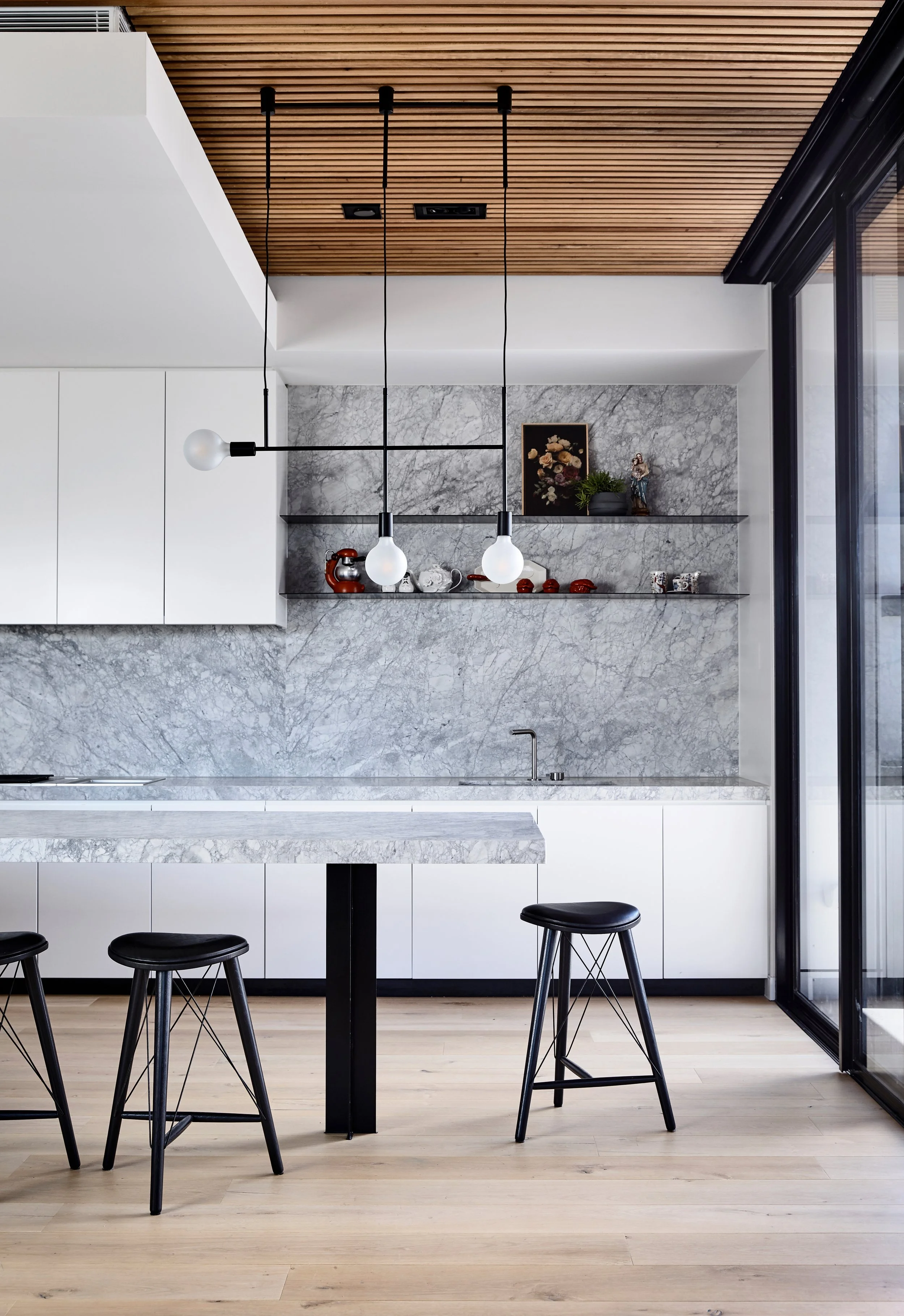 Holly Penthouse was a project that was born from the purchase of an old office building. Designed using the initial footprint of the existing building, the goal was to create a home in the sky for a family who likes to entertain, a four-year project that Bec over saw every step of the way from initial purchase, all the way through to the shoot day. In collaboration with Architect Tom Robertson and Stylist, Simone Haag, a minimalist, yet warm and inviting home was created, maximising the stunning views. Pieces were selected to enhance the architecture. A refined sense of playfulness and some bold choices determined the furniture, with subtle 70s references throughout. Knowing a family would be growing up here was key while maintaining a mature, sophisticated, and timeless design.